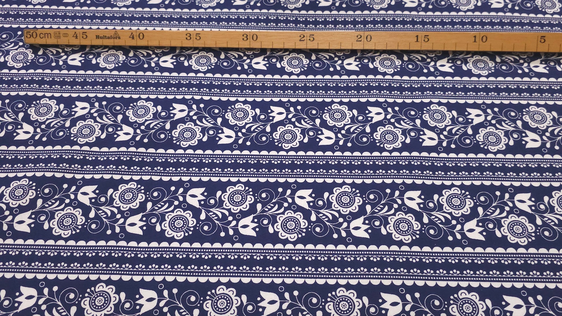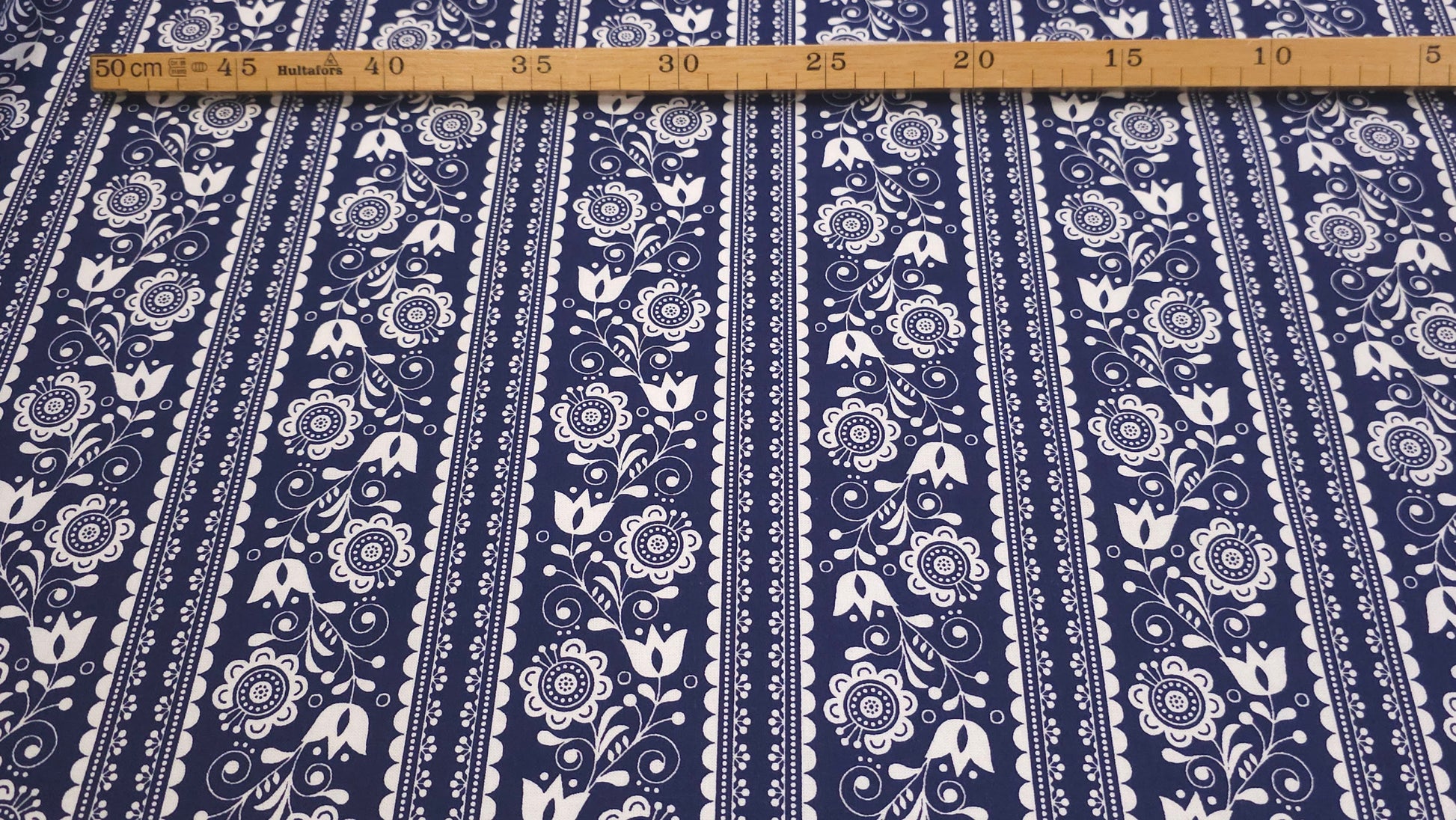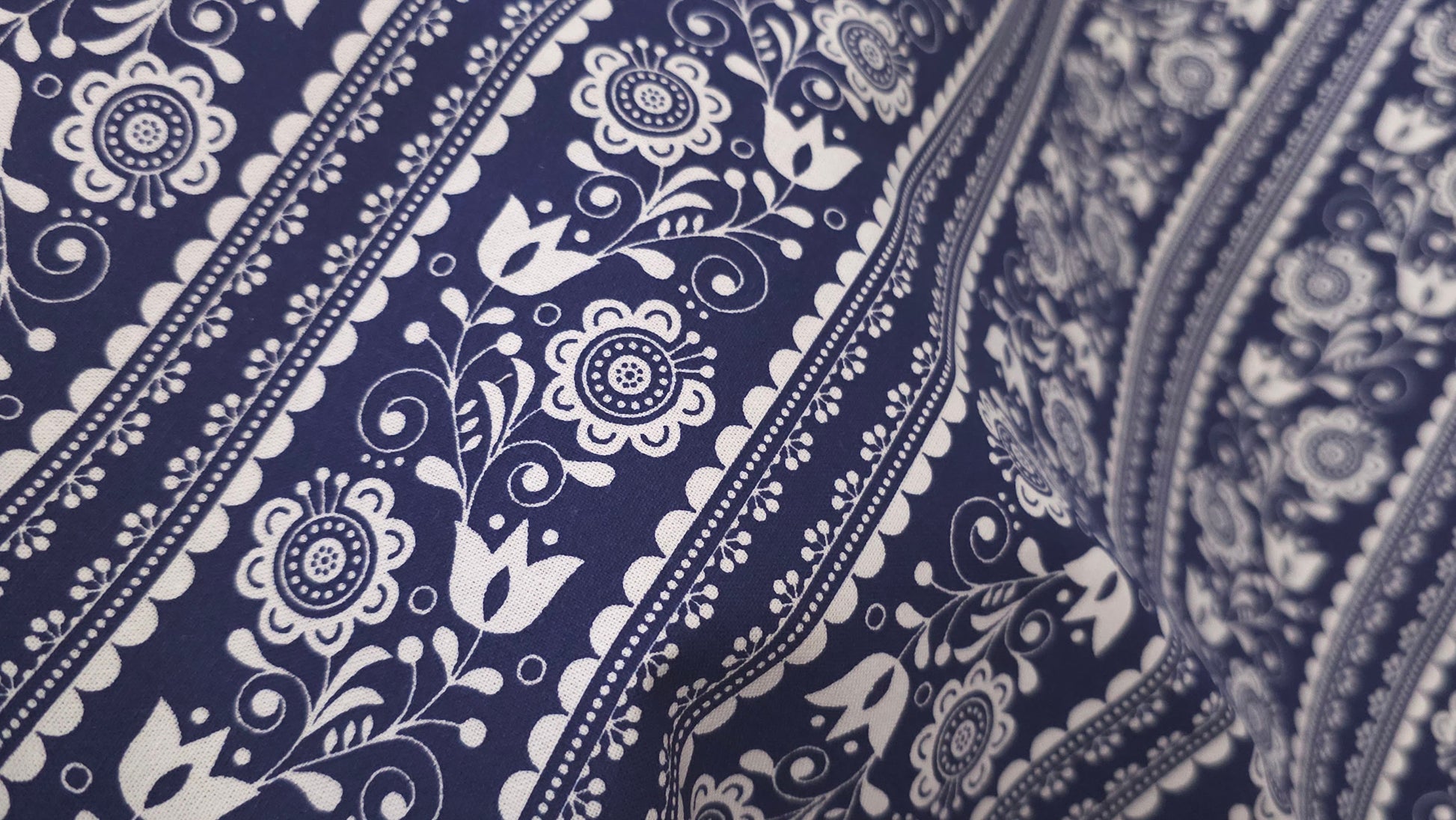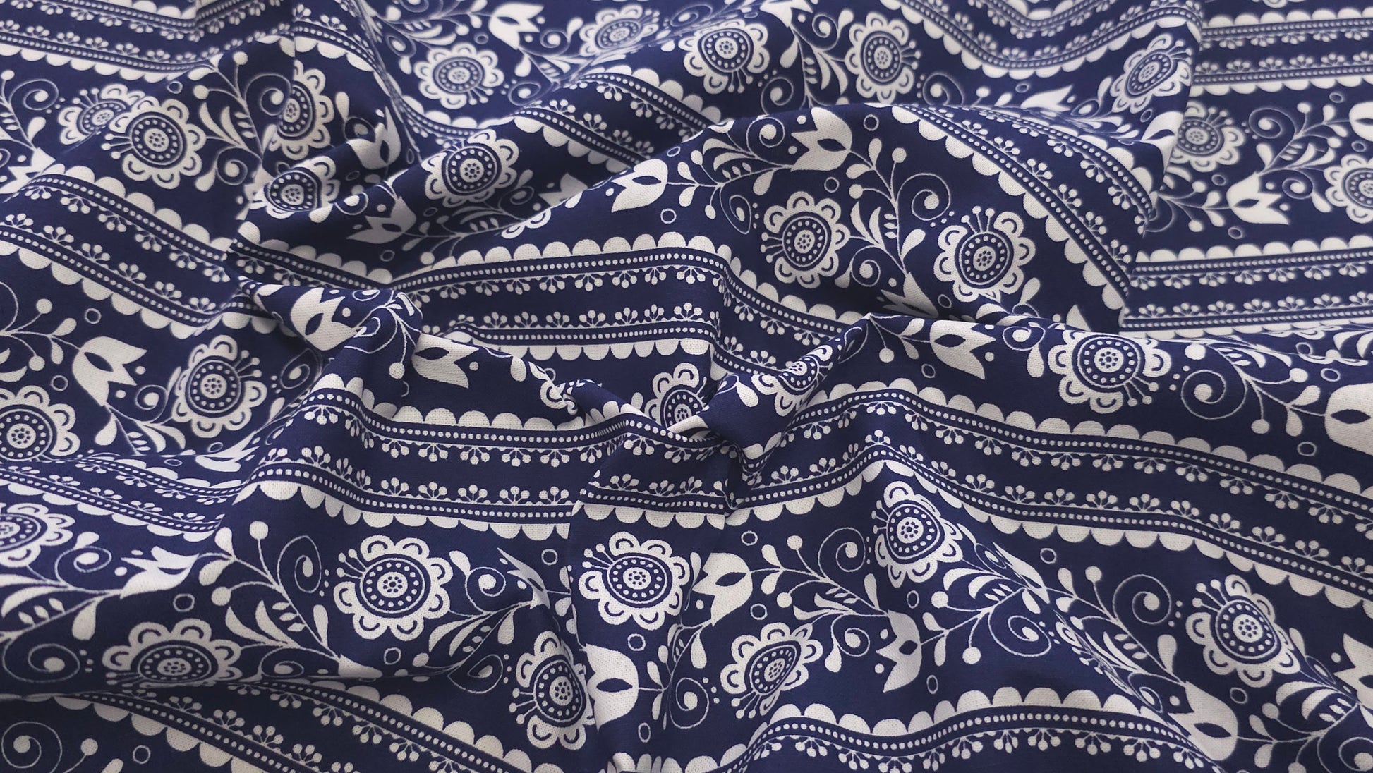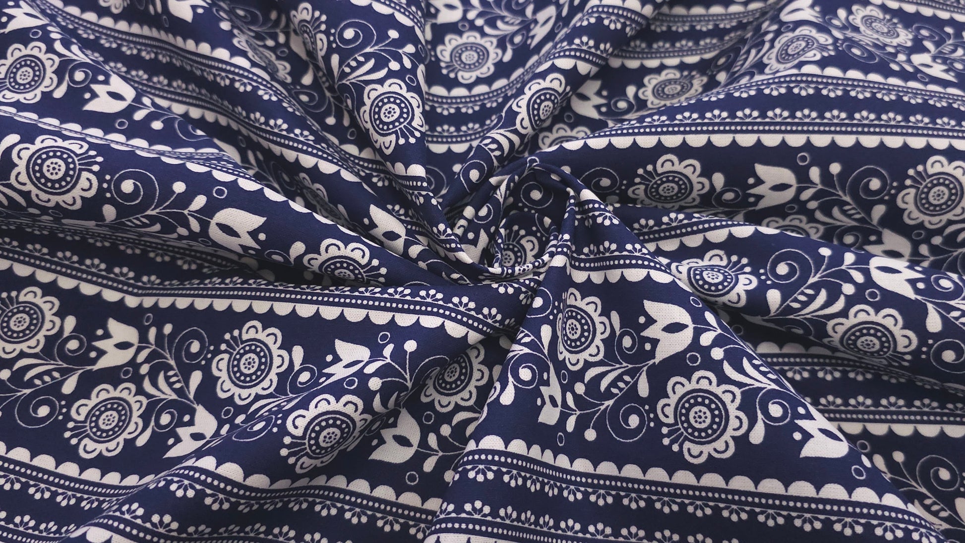 Bomuld Print Blomstret Mørkeblå med hvid