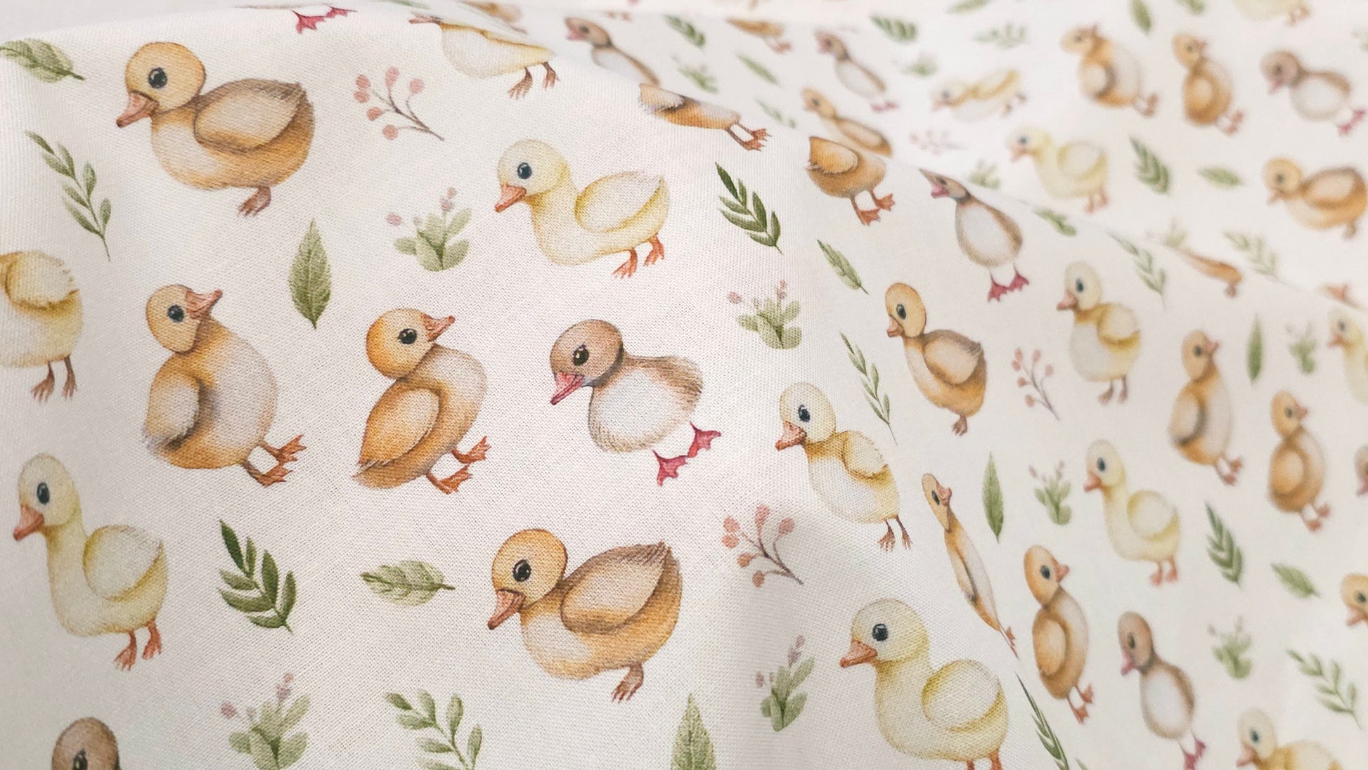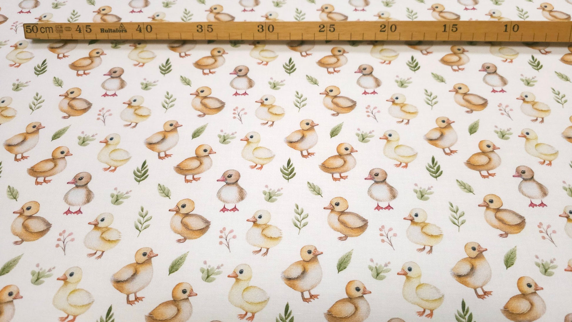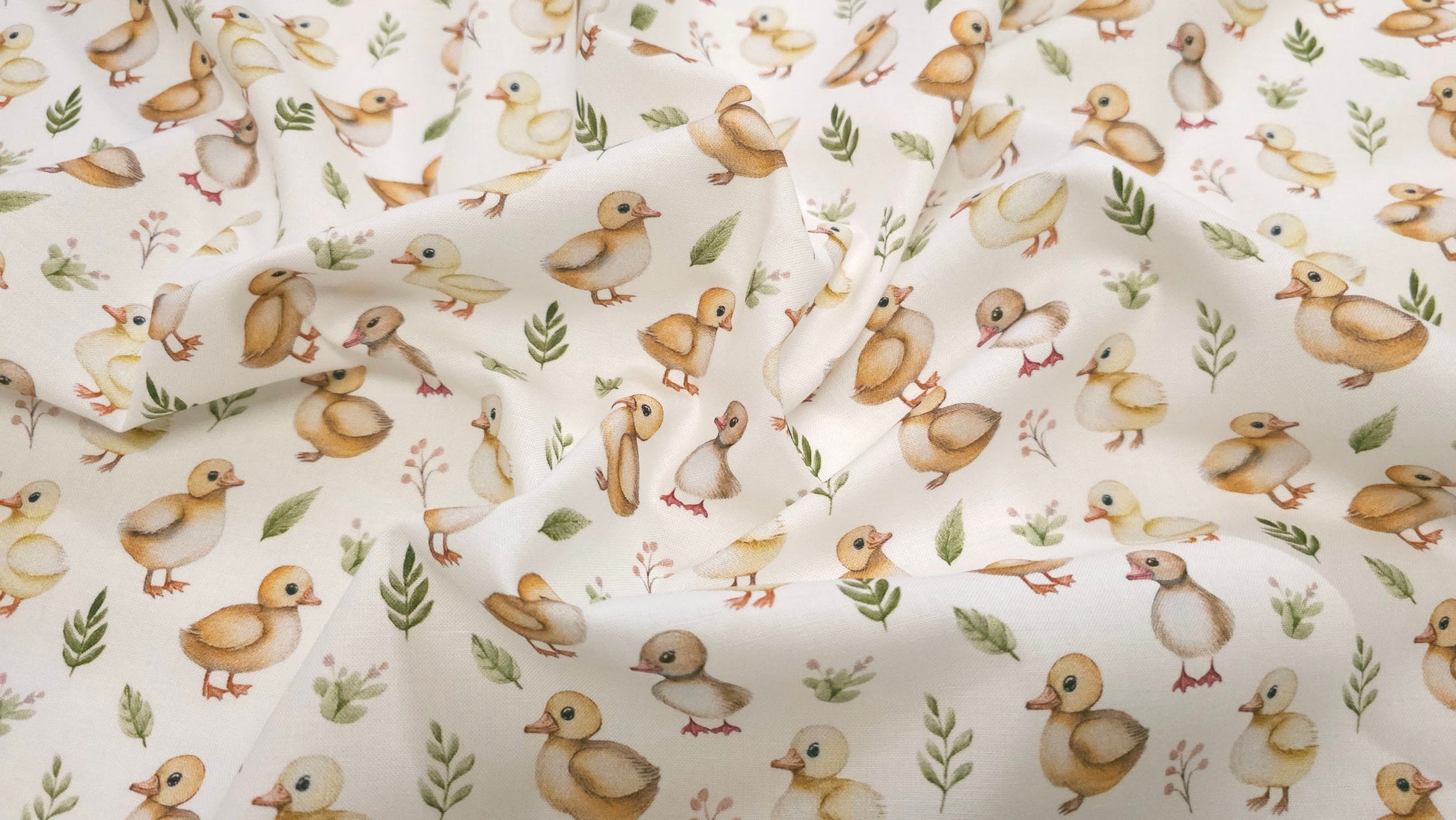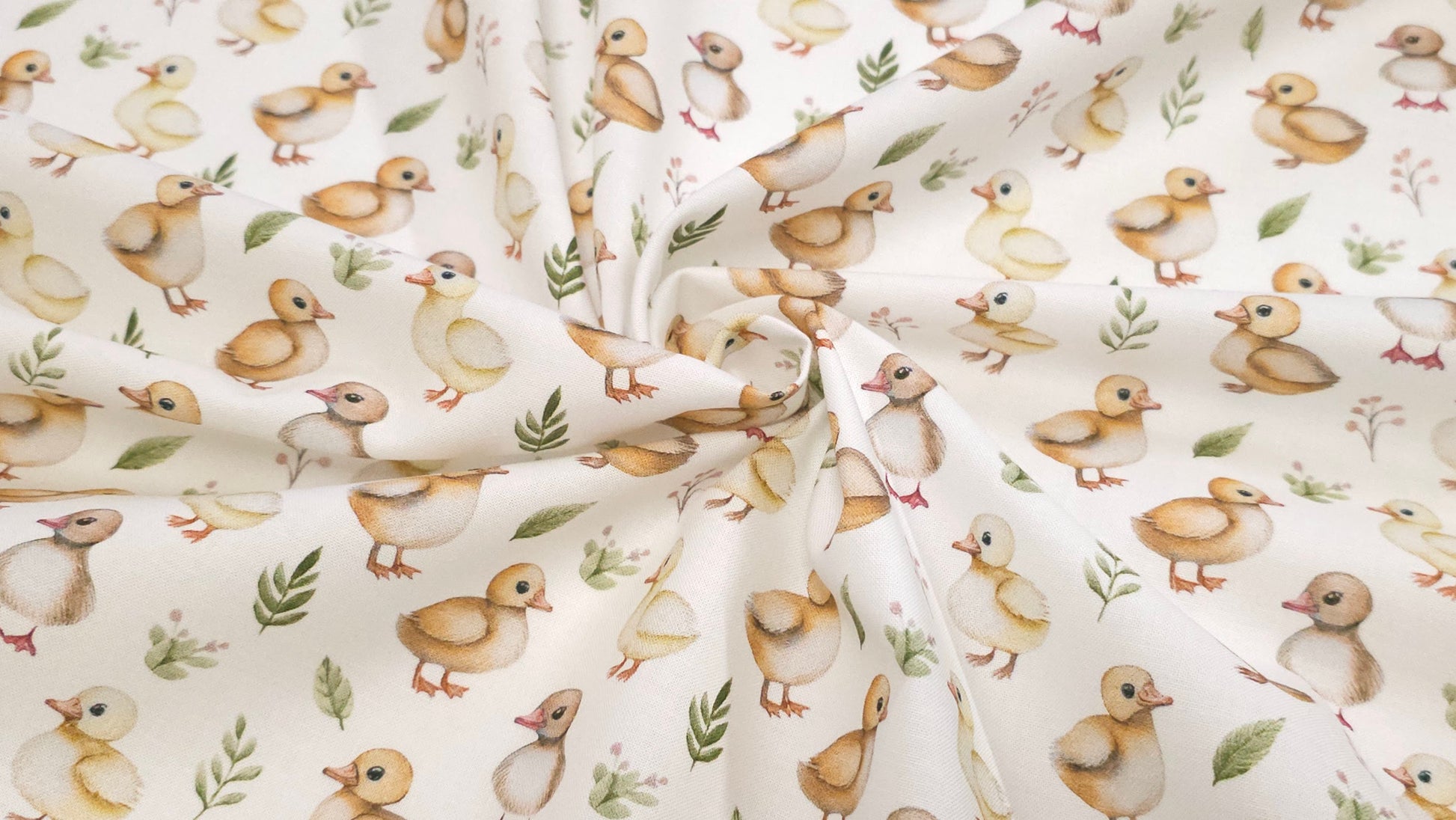 Bomuld Print Påskekyllinger Hvid med gul/brun/grøn