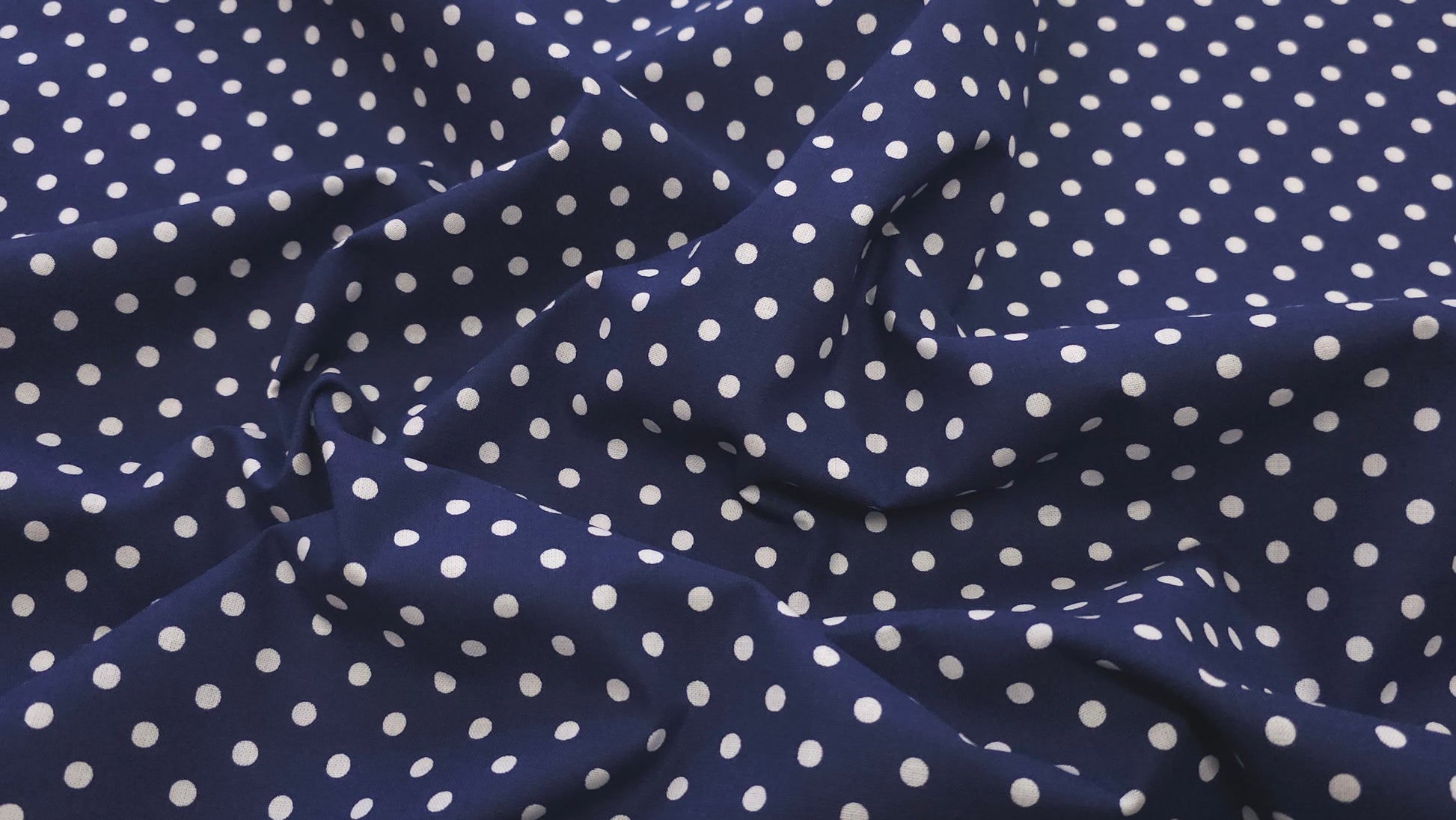 Bomuld Print Polkaprikket Mørkeblå