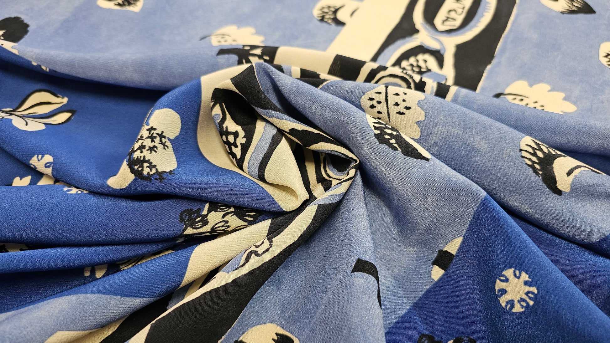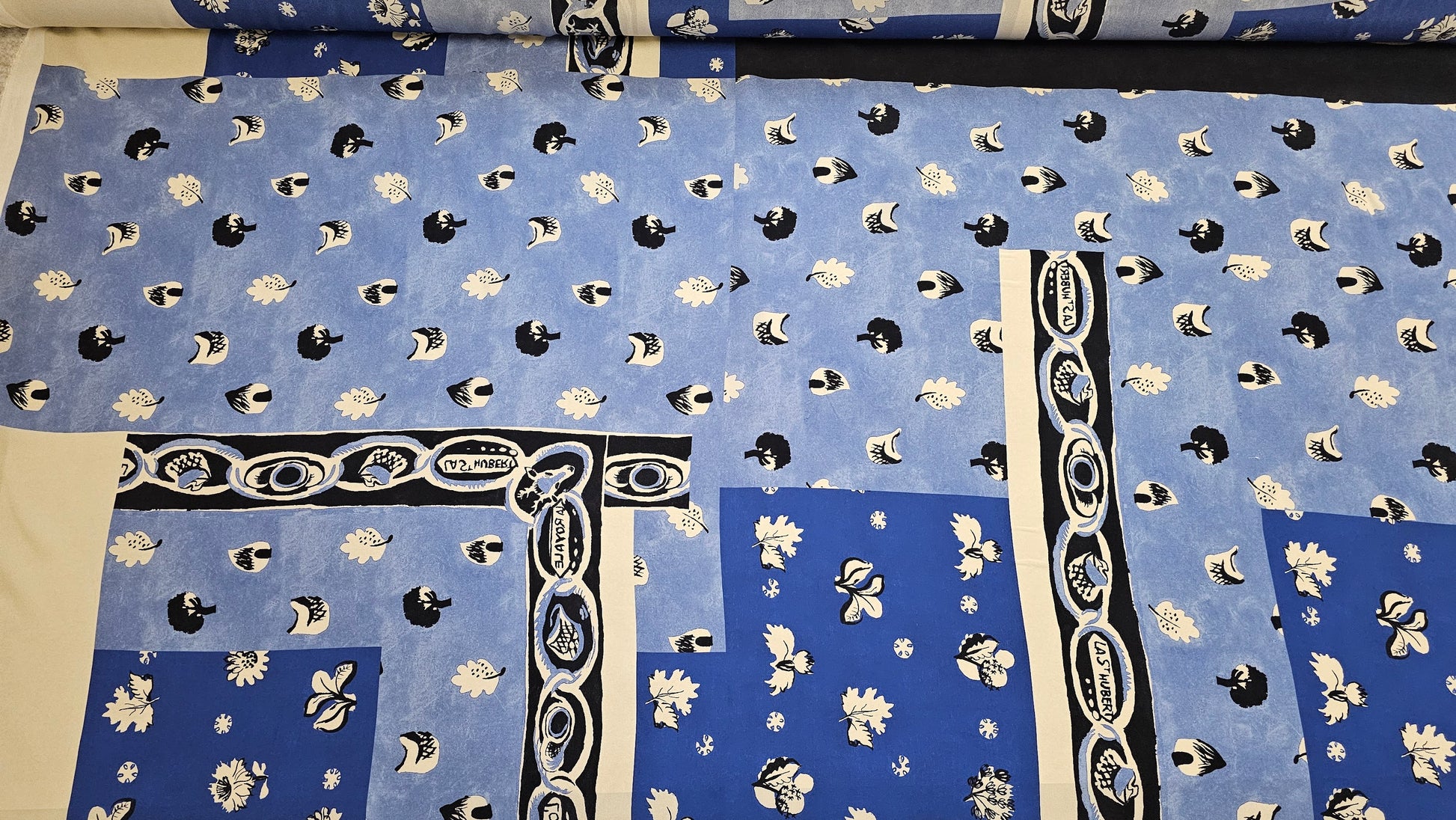 Panel med print, blå og hvid