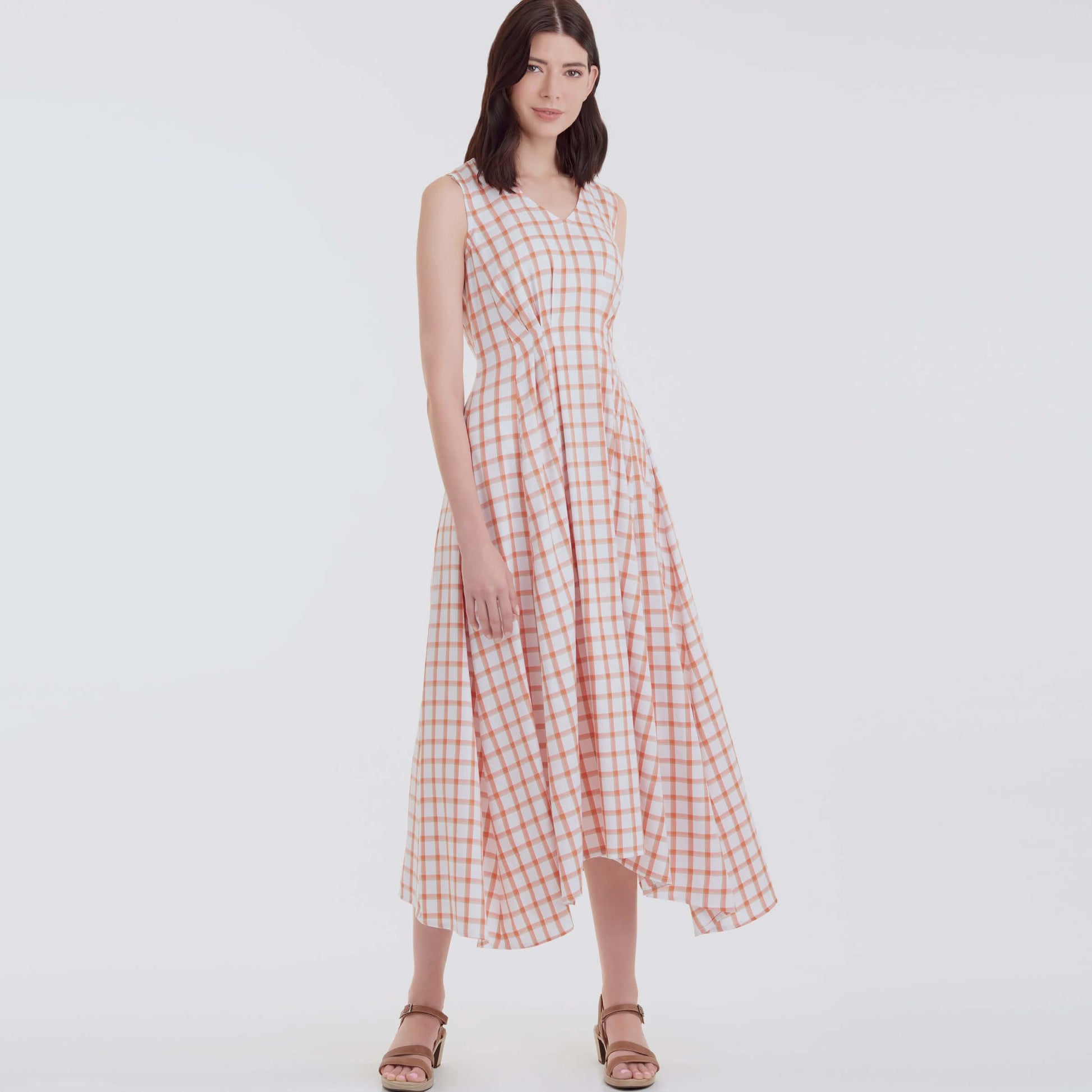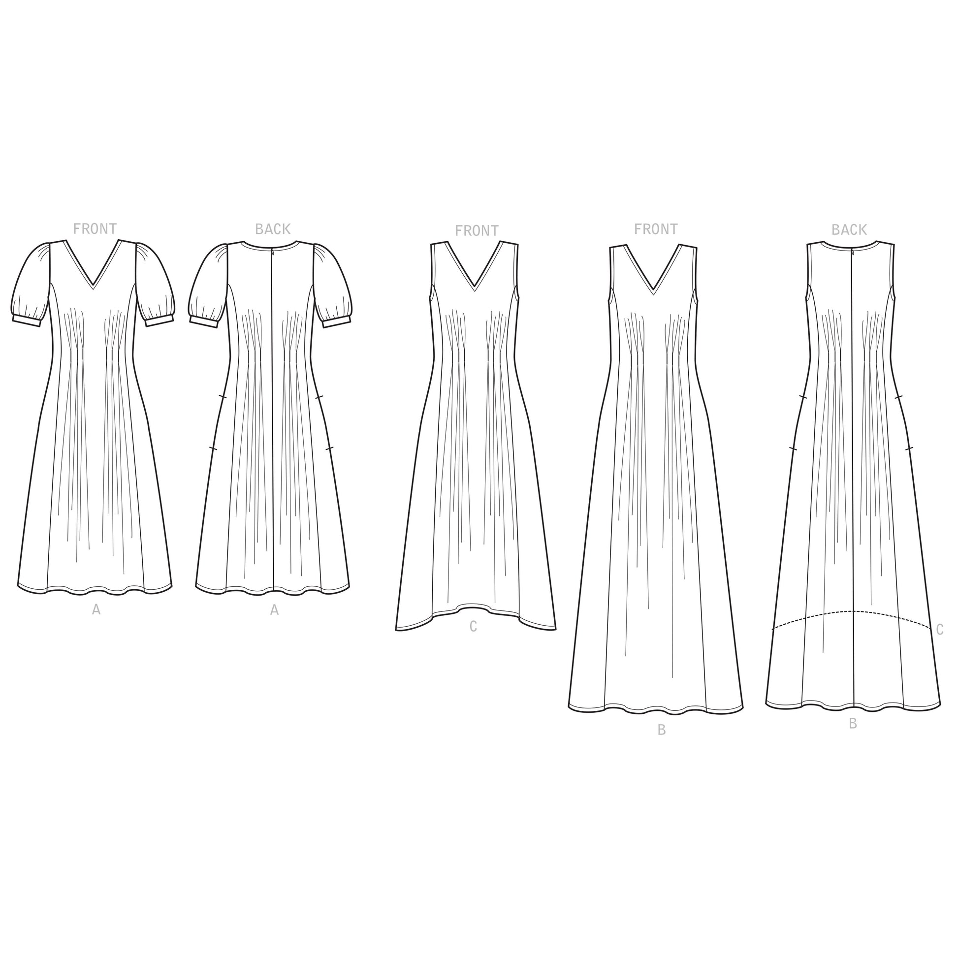 Kjole med løsnede læg. Variationer af ærmer og kant.