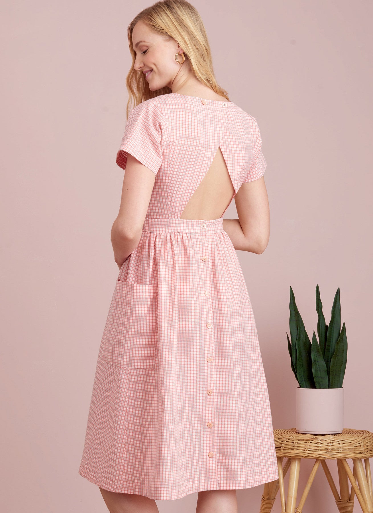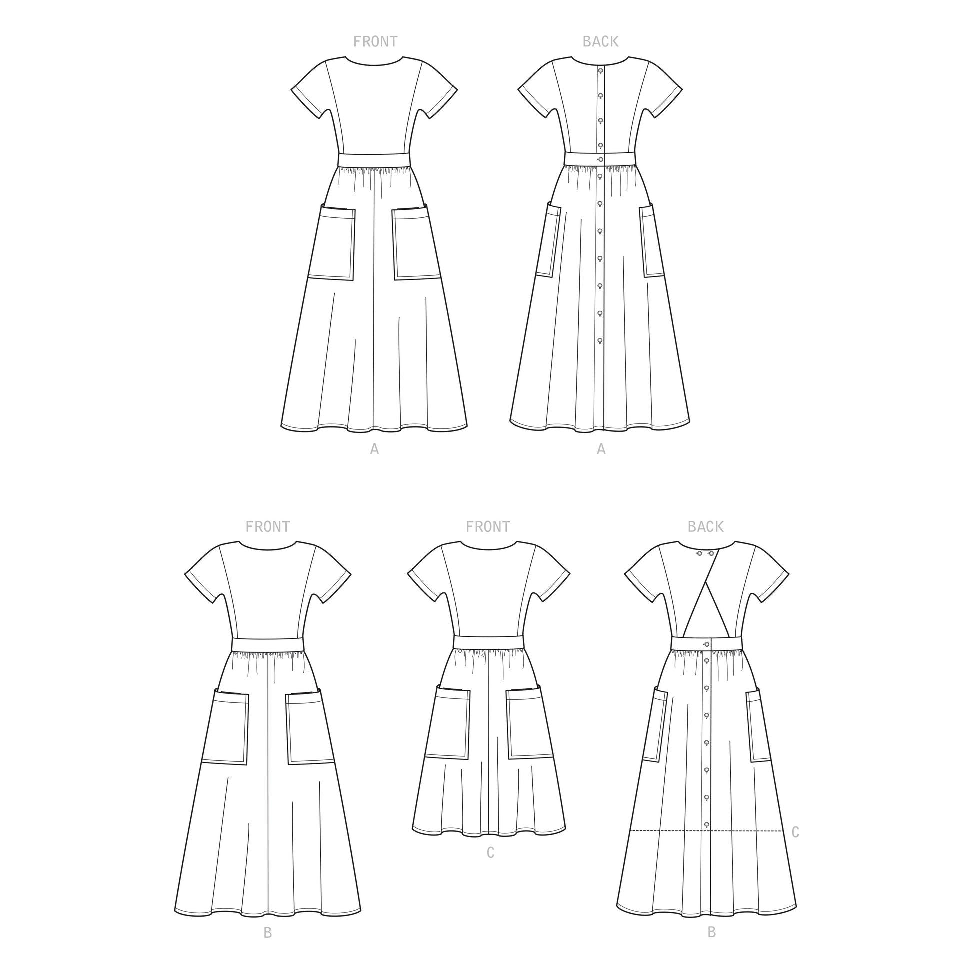 Kjoler med søm foran i overdelen, tætsiddende i taljen. Knaplukning bagpå med åben overdel bagpå eller knapper midt bagpå i variationer.