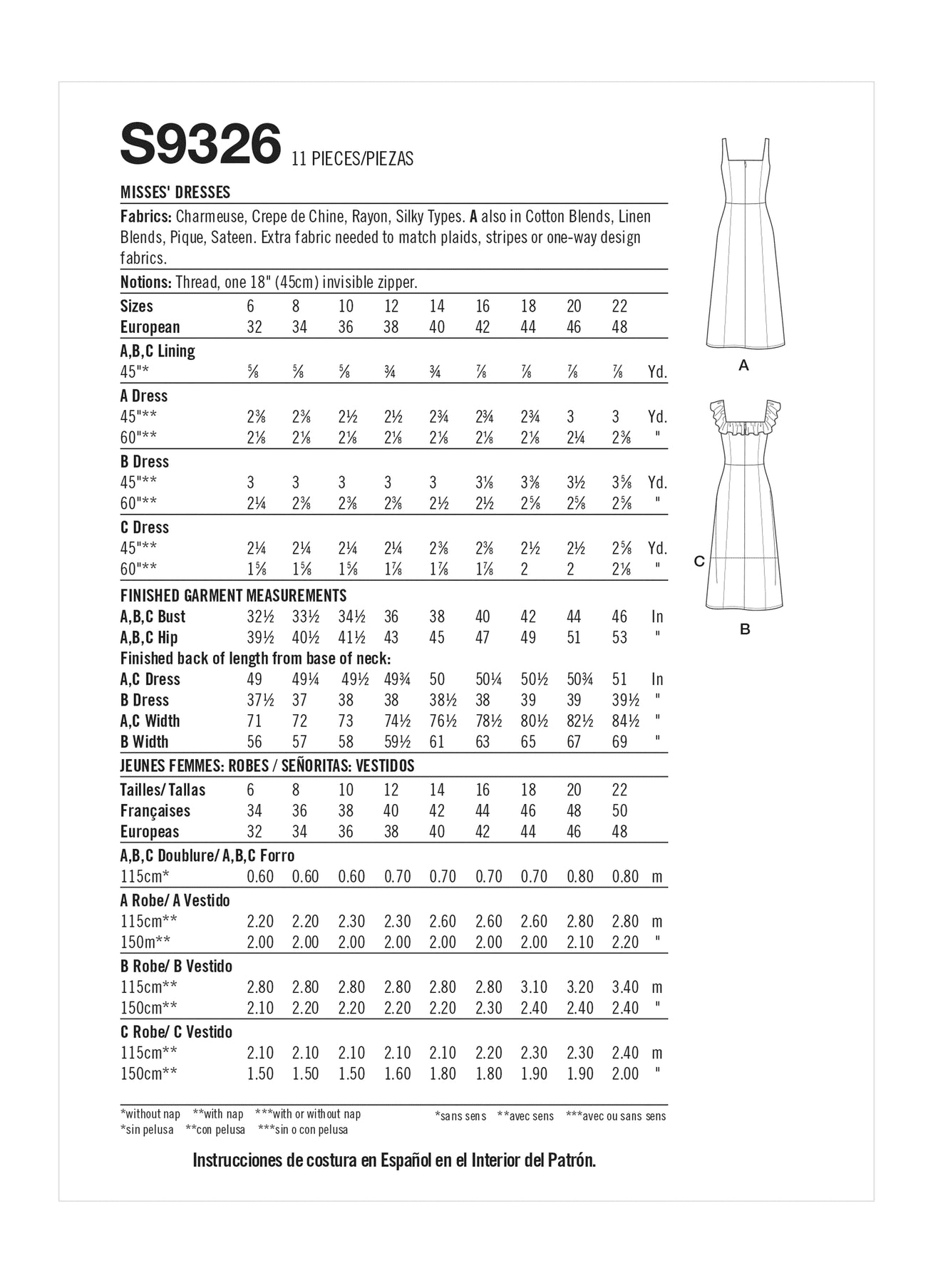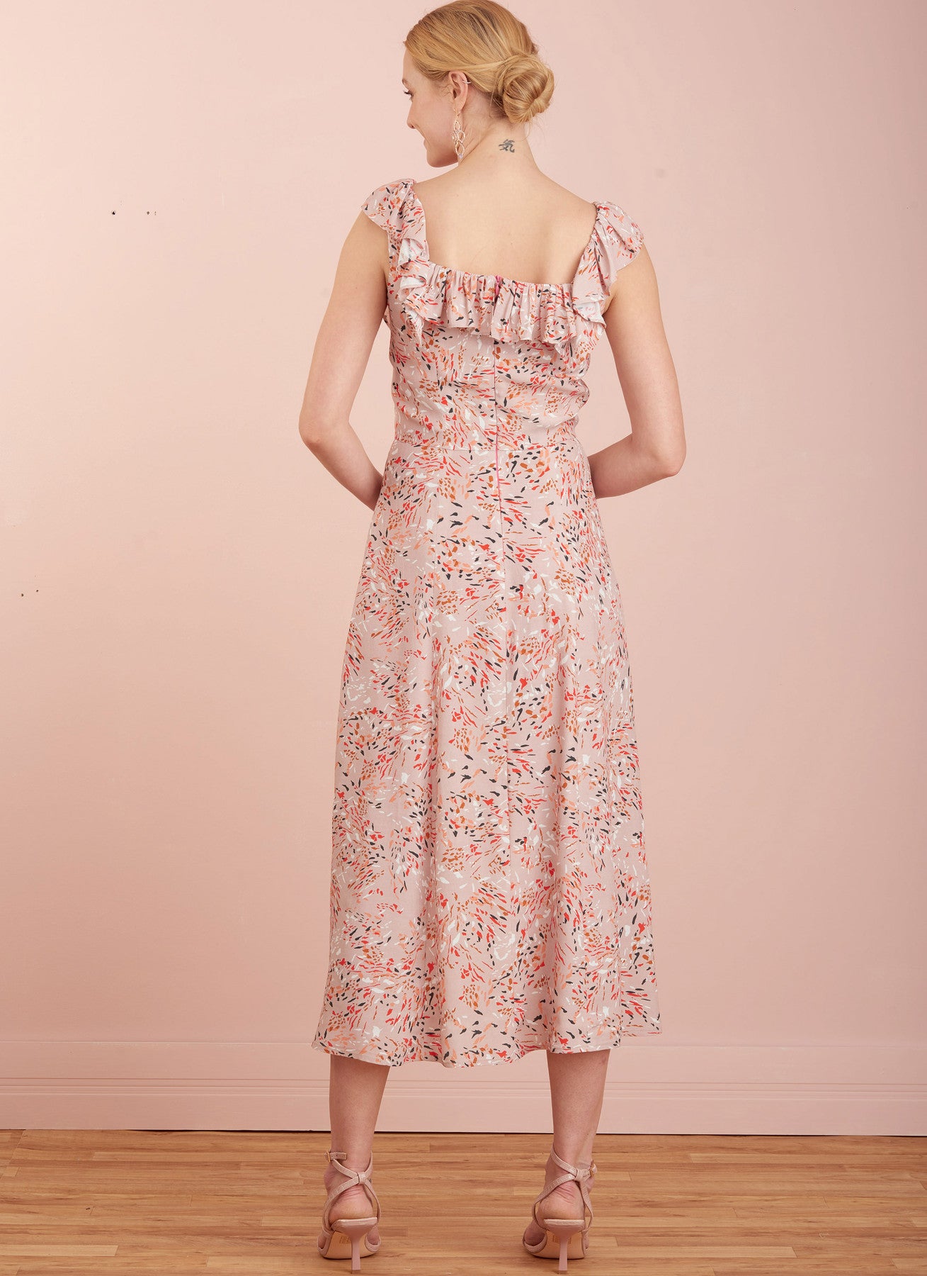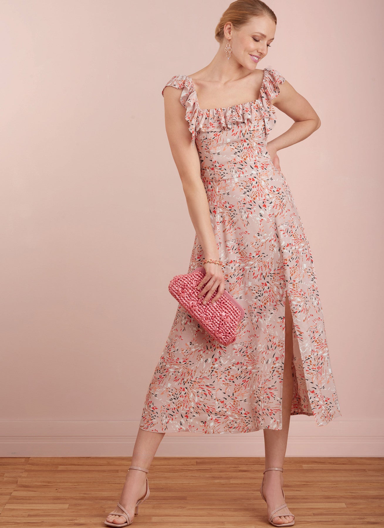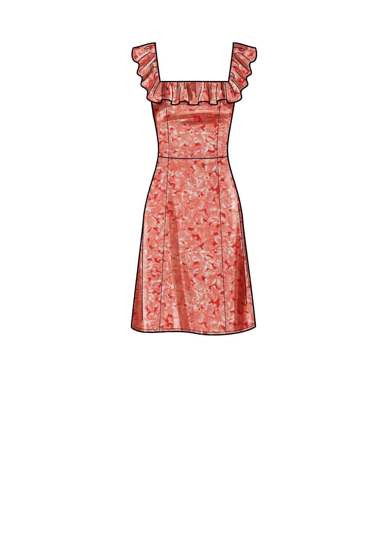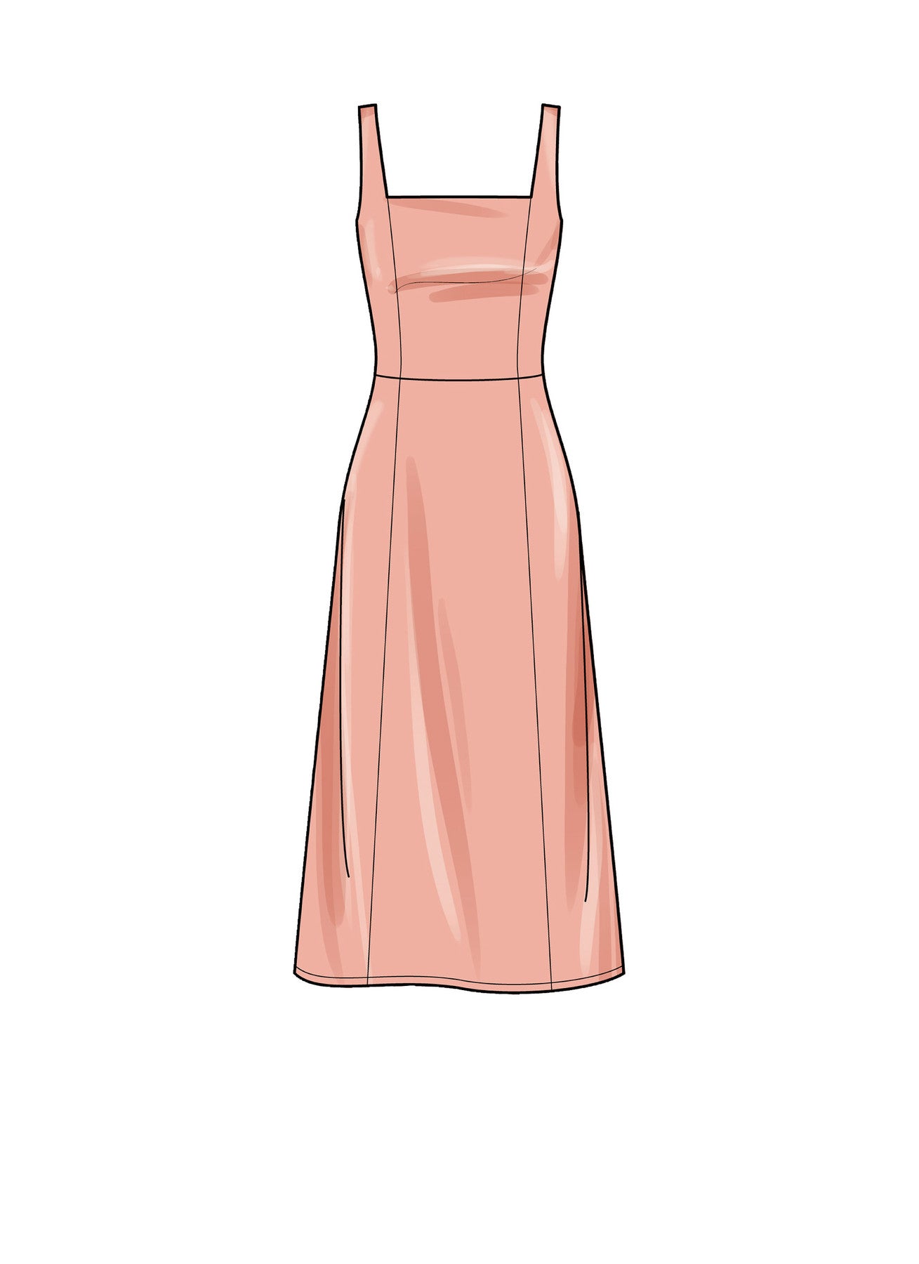 Kjoler med prinsessesømmet overdel og nederdel. Overdelen er foret. Valgfri flæseudskæring. Skuldrene er 'bh-venlige'. To længdemuligheder inklusive midilængde. Syklassificering: Nem.