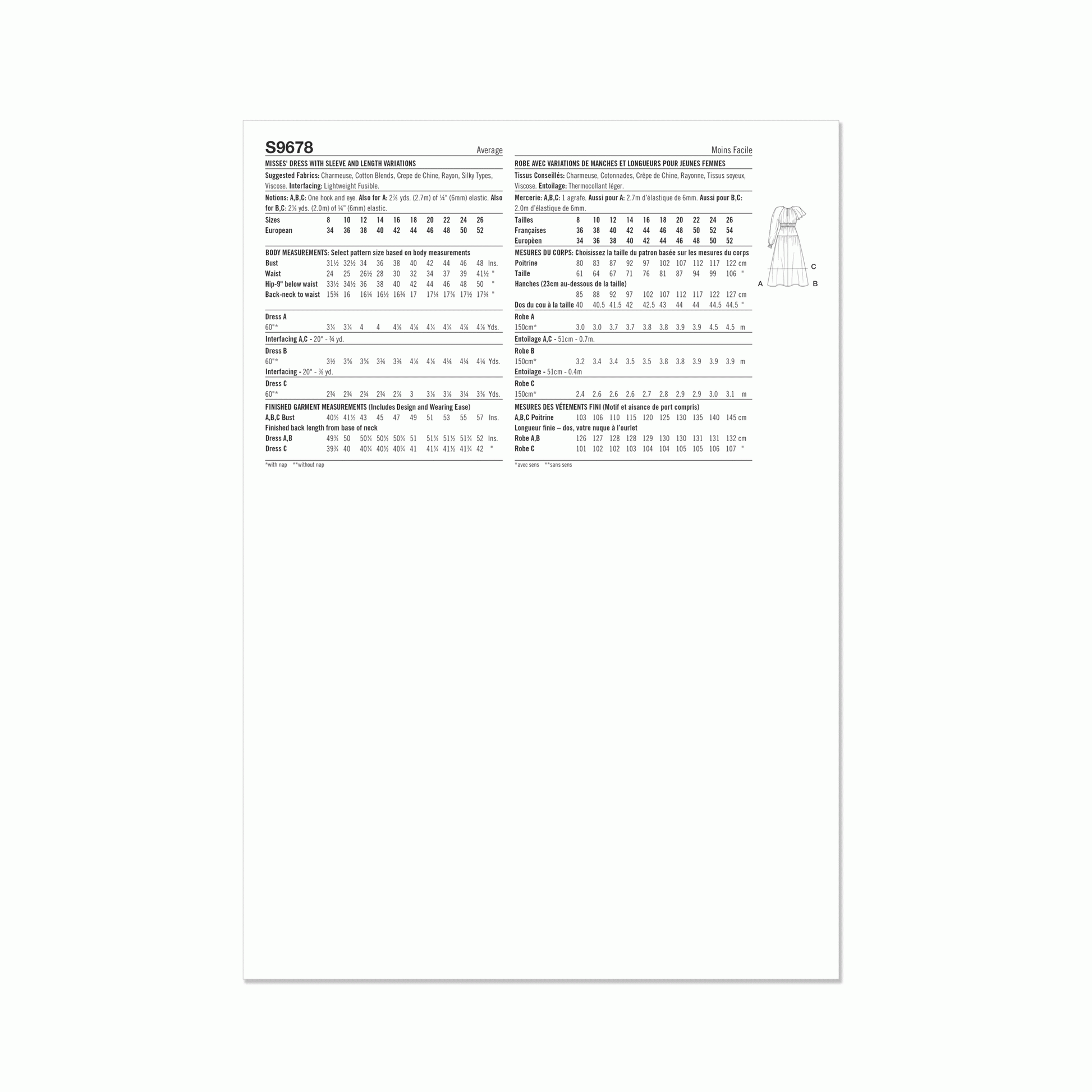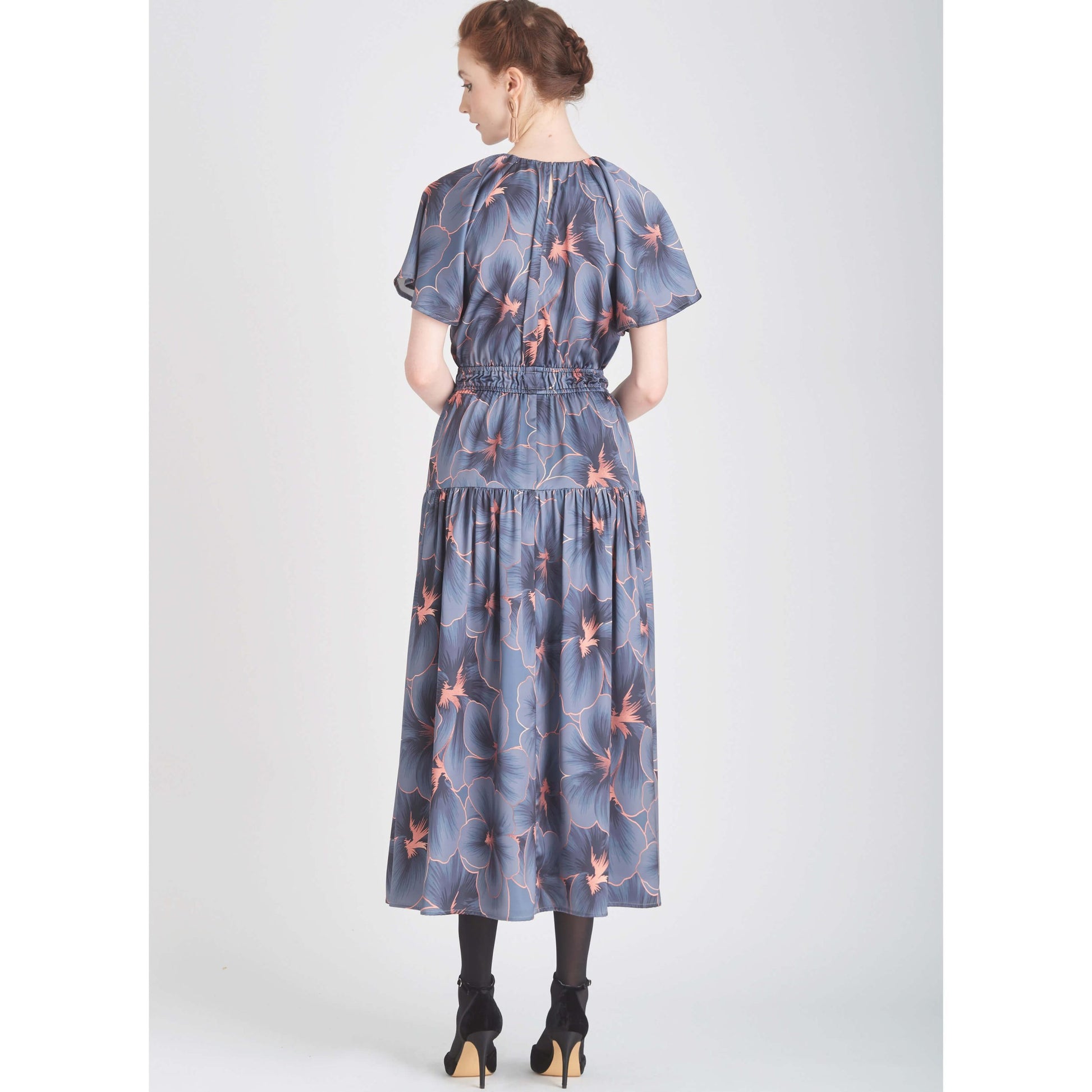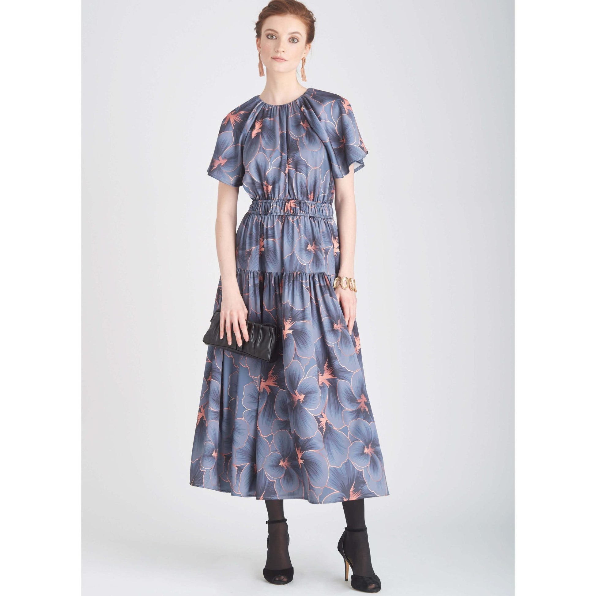 Kjoler har rynker i halsudskæringen og raglanærmer. Variation for sømåbninger med bindebåndslukning i halsen. Rynker laves i taljen med to rækker elastik. Alle har lagdelte nederdele, nøglehulsåbning bagpå med hægte- og mallelukning. Længdevariationer. Kjole A: lange ærmer med elastiske rynker ved håndleddet. Kjoler B og C: flagrende ærmer.